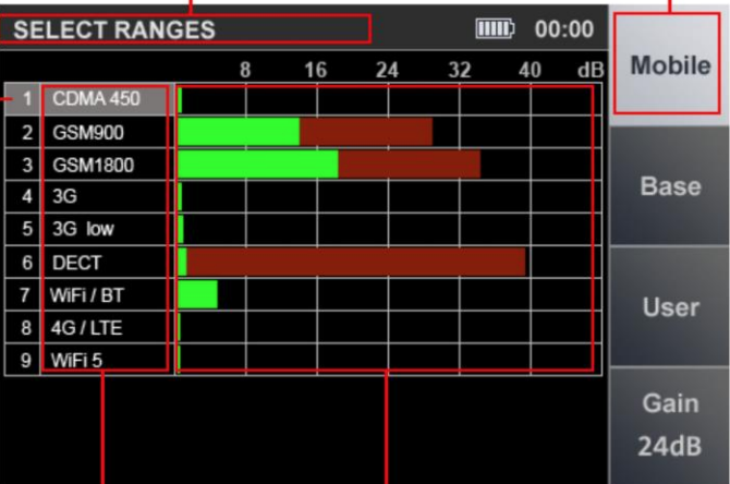 Spectrum Analyzer, selected ranges, parametric detector, ir detector.