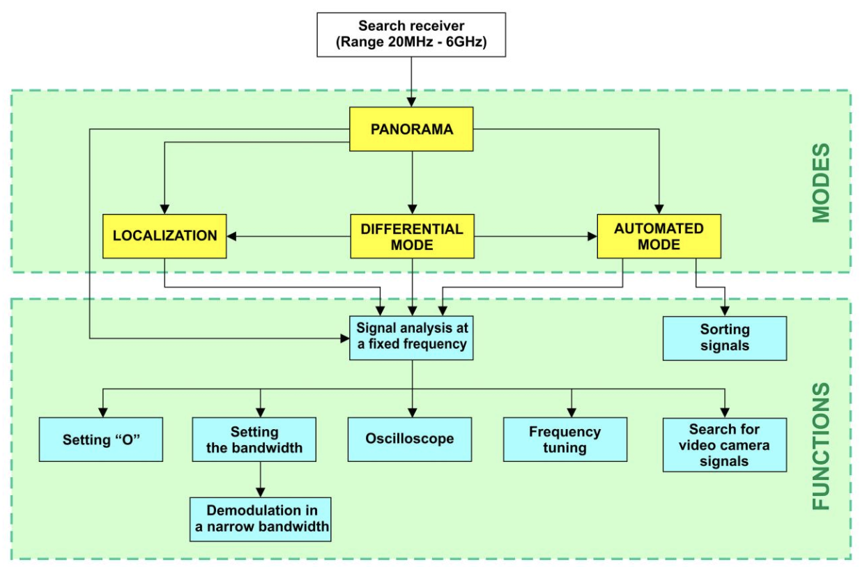 Powerfull multifunctional detection device for detection and location of eavesdropping devices. (HF, Radiofrecuency, Infrared and voice recorders.